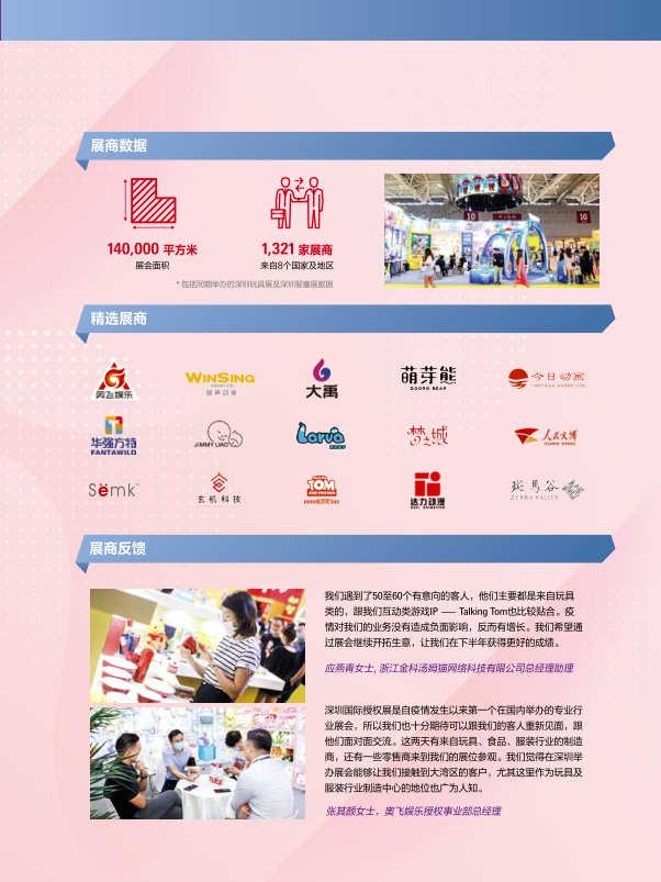 为进一步发掘ip授权市场的潜力,激发产业协同效应,前身为深圳玩具展的---ip授权展区于今年升级为深圳授权展。在传统---形象授权企业参展的基础上,今年展会迎来包括艺术及博物馆、潮牌、名人及公司品牌等各领域的国内外品牌共聚-堂,在为期3天的展会,给观众带来了-场别出心裁的ip文化之旅: