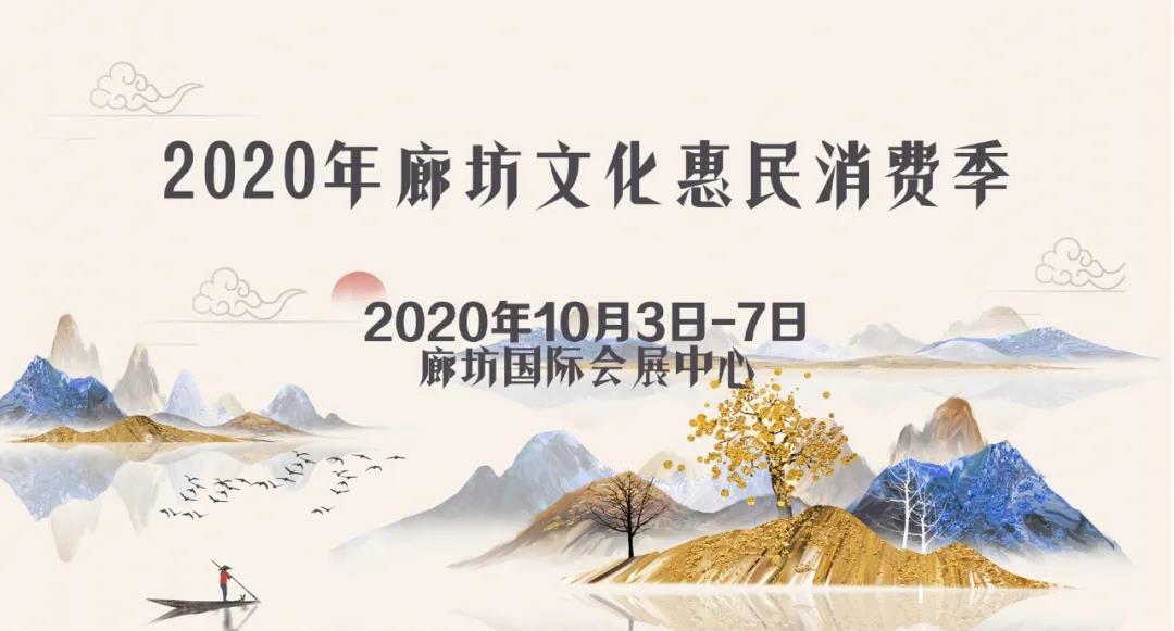 为积极应对新冠肺炎疫情对于文化产业的冲击影响,持续打造廊坊文化消费特色品牌,促进本地文化消费增长,努力将本次展会办成展示非遗、乐器、动漫、汽车、茶文化、体育、教育、工艺美术、母婴用品等文化要素的重要窗口,推动复工复产,早日实现经济复苏,拟定于2020年10月3日-6日在廊坊国际会议展览中心A馆举办“2020廊坊文化惠民消费季”。