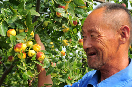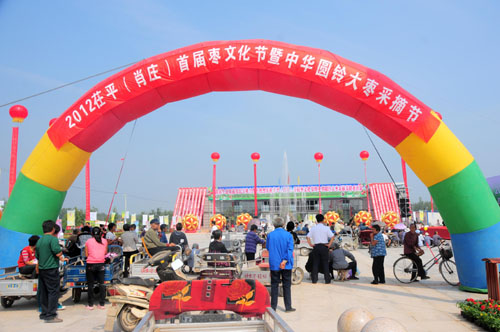 1997年茌平县被定名为“中国圆铃大枣之乡。2012年肖庄镇投资1200万元成立了茌平县鑫岳生态果蔬农民专业合作社,重点对大枣的新品种开发、收购、加工、销售进行全面管理指导。山东省茌平县(肖庄镇)首届枣文化节暨中华园铃大枣采摘节的成功举办必将带动当地果蔬业的快速发展。(史奎华 摄)