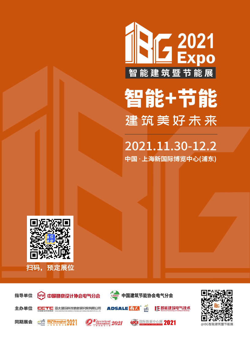 2021国际智能建筑暨节能技术展览会(IBG)以引领行业发展为使命,精准地针对建筑承建商、智能化承建商、智能化设计师、电气设计师、系统集成商、房地产开发商、园区业主、社区业主、酒店业主等智能建筑领域的业内人士搭建专题交流平台,更与知名品牌展览会【EP Shanghai国际电力电工展】和【CDCE国际数据中心展】同期举办,强强联合发挥协同效应,带来更多设计规划院、机电工程、IDC数据中心、EPC总包、房地产、电力、金融、交通、医疗、教育、制造业等用户。