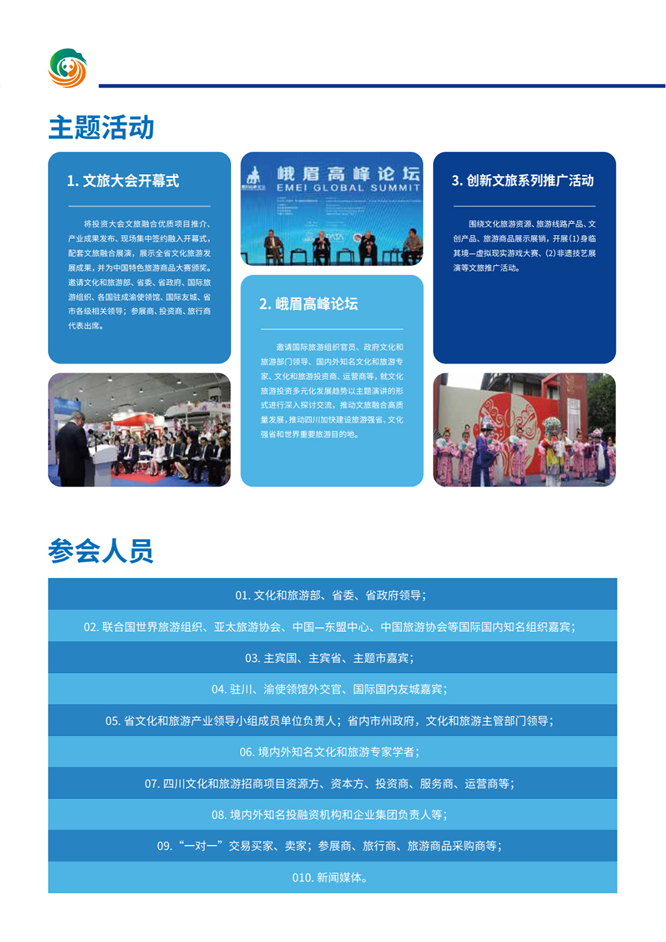 内容摘要: 第六届中国( 四川 ) 国际旅游投资大会 第 七 届 四 川 国 际 旅 游 交 易 博 览 会 The 6 th China ( Sichuan ) International Tourism Investment Conference The 7 th Sichuan International Tourism Trade Expo 主展场……
