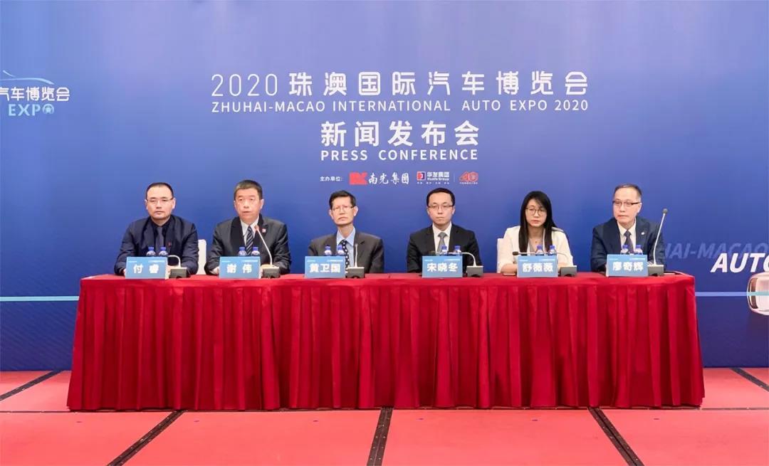 在澳珠两地会展管理部门支持下,澳门南光集团与珠海华发集团共同主办,南光国际会议展览有限公司、珠海华发国际会展管理有限公司、珠海华发国际会展有限公司承办的2020珠澳国际汽车博览会(以下简称“珠澳车展”或“车展”)于2020年7月10日在珠海国际会议中心举行了首场新闻发布会。来自澳珠两地相关单位嘉宾及展商代表出席发布会。澳门南光集团常务董事、副总经理宋晓冬、珠海市商务局副调研员黄卫国及珠海华发集团常务副总经理谢伟出席发布会。