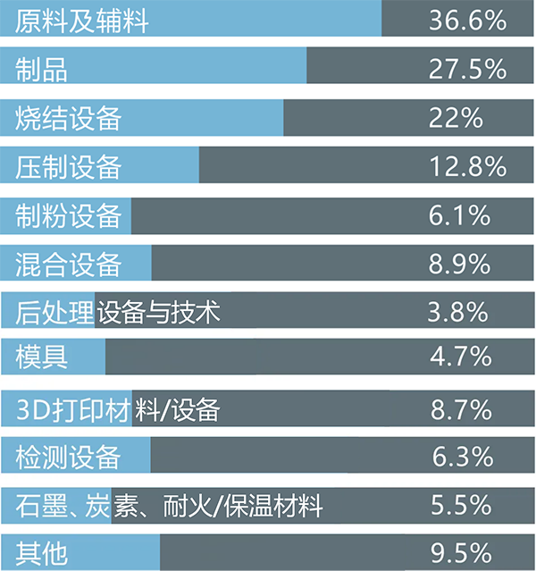 备料、制粉、混合、成型、烧结、干燥、热工、后处理、测量/控制、实验设备等