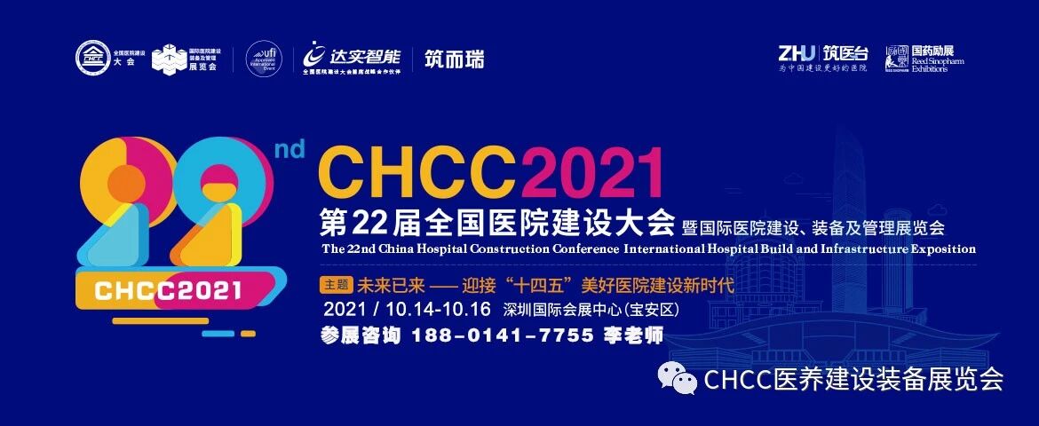 2021年10月14-16日,由中国医学装备协会、中国医建整合联盟作为指导单位,筑医台、国药励展、中国医学装备协会医院建筑与装备分会、筑而瑞联合多家权威机构共同举办的“第二十二届全国医院建设大会暨国际医院建设、装备及管理展览会”(简称 CHCC2021)将于深圳国际会展中心(宝安区)隆重召开。