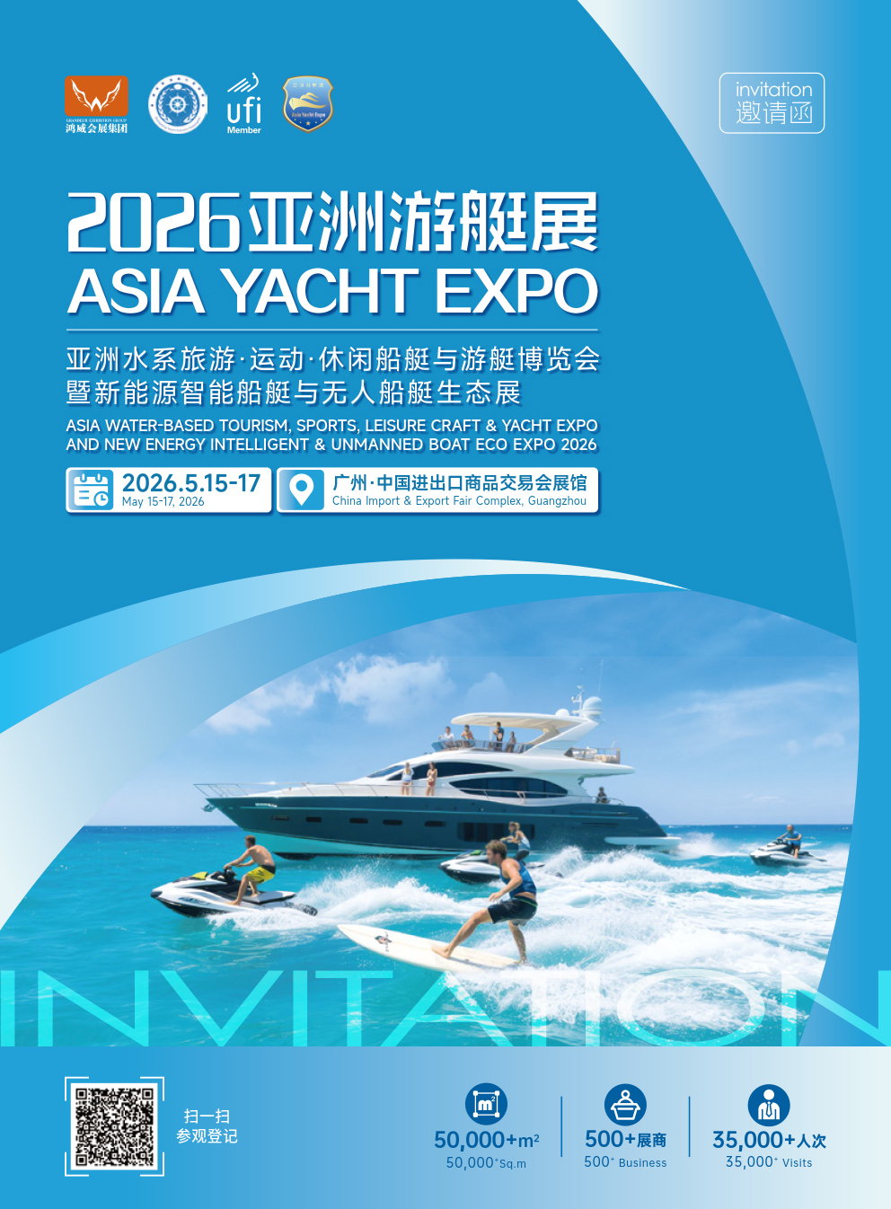 2026亚洲水系旅游·运动·休闲船艇与游艇博览会暨新能源智能船艇与无人船艇生态展于2026年5月15-17日在广州˙广交会展馆举行。