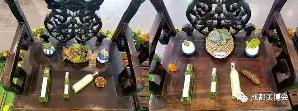以清朝中期老家具作为背景,浮雕为蝙蝠及中式图腾雕花,意为蝙蝠通多福,植物多肉与产品共同陈列,正是女生的多喜爱,趣与情共生,点缀松果,让人往返流连,爱恨之间,让松之久远,相是往生,触动我内心柔软的为一点与观者共鸣。