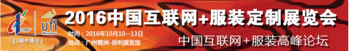 2016中国互联网+服装定制展览会 邀请函 由广东省服饰文化促进会承办的2016中国互联网+服装定制展览会,将于2016年10月10-13日在广州琶洲保利世贸一号馆举行,本届专业展主题是: 以……阅读全文>>展会日期:2016-10-10至2016-10-13  举办展馆:广州琶洲保利博览馆