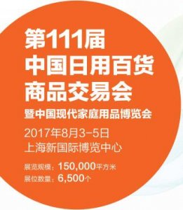 2017第111届中国日用百货商品交易会暨中国现代家庭用品博览会 时 间:2017年8月3-5日 地 点:上海新国际博览中心 (上海市浦东新区龙阳路2345号) 展会规模:160,000平方米 展位数量:7,50……阅读全文>>展会日期:2017-08-03至2017-08-05  举办展馆:上海新国际博览中心